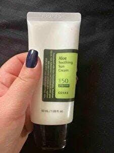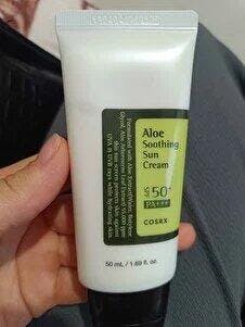 The COSRX Aloe Soothing Sun Cream is formulated with Aloe Arborescens Leaf Extract, designed to feel like a light moisturizer without leaving the skin dry.